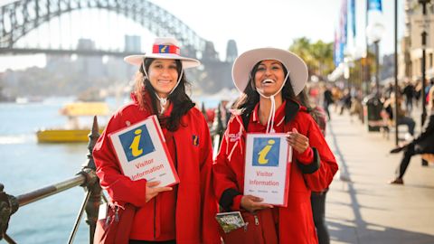 Around 200 roaming ambassadors meet and greet tourists at hotspots across the city centre, including Circular Quay, outside the Queen Victoria Building and around Sydney Town Hall.