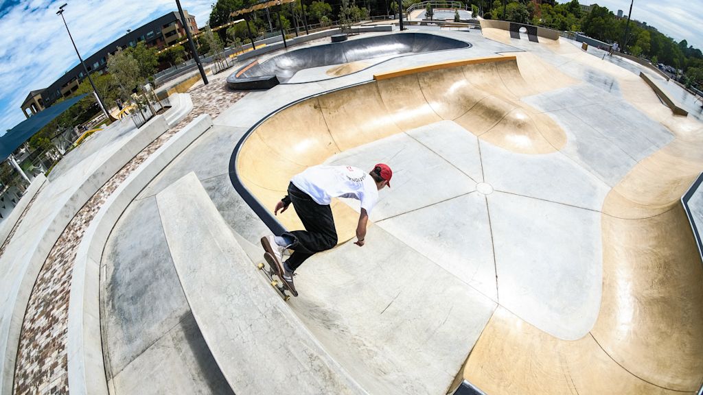 Featuring the largest public flow bowl in Sydney, a beginner’s bowl and an expansive skate plaza riddled with challenges, the Sydney Park spaces cater for people of all abilities on skateboards, BMX bikes and scooters.