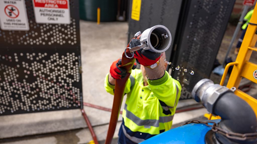 The surplus capacity of water from dialysis is captured in two large 10,000 litre tanks onsite. The City of Sydney fills its trucks with the water, saving an estimated 30,000 litres every week.